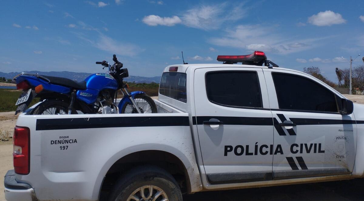 Durante as investigações, a DRF localizou, prendeu o suspeito e apreendeu a motocicleta nas proximidades do Açude Jatobá .