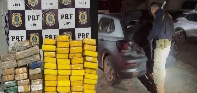PRF apreende 64 kg de cocaína e 5 kg de skunk em Patos
