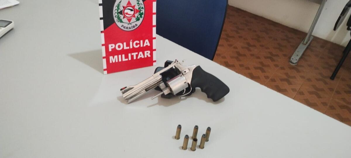 Ao chegar ao local, os policiais localizaram um suspeito com as mesmas características informadas, procedendo com a abordagem. Durante a busca pessoal, foi encontrado um revólver calibre .38 em sua cintura, contendo seis munições, sendo cinco intactas e uma deflagrada.