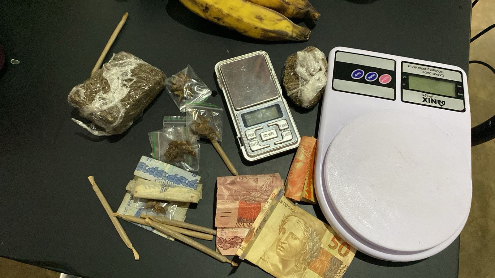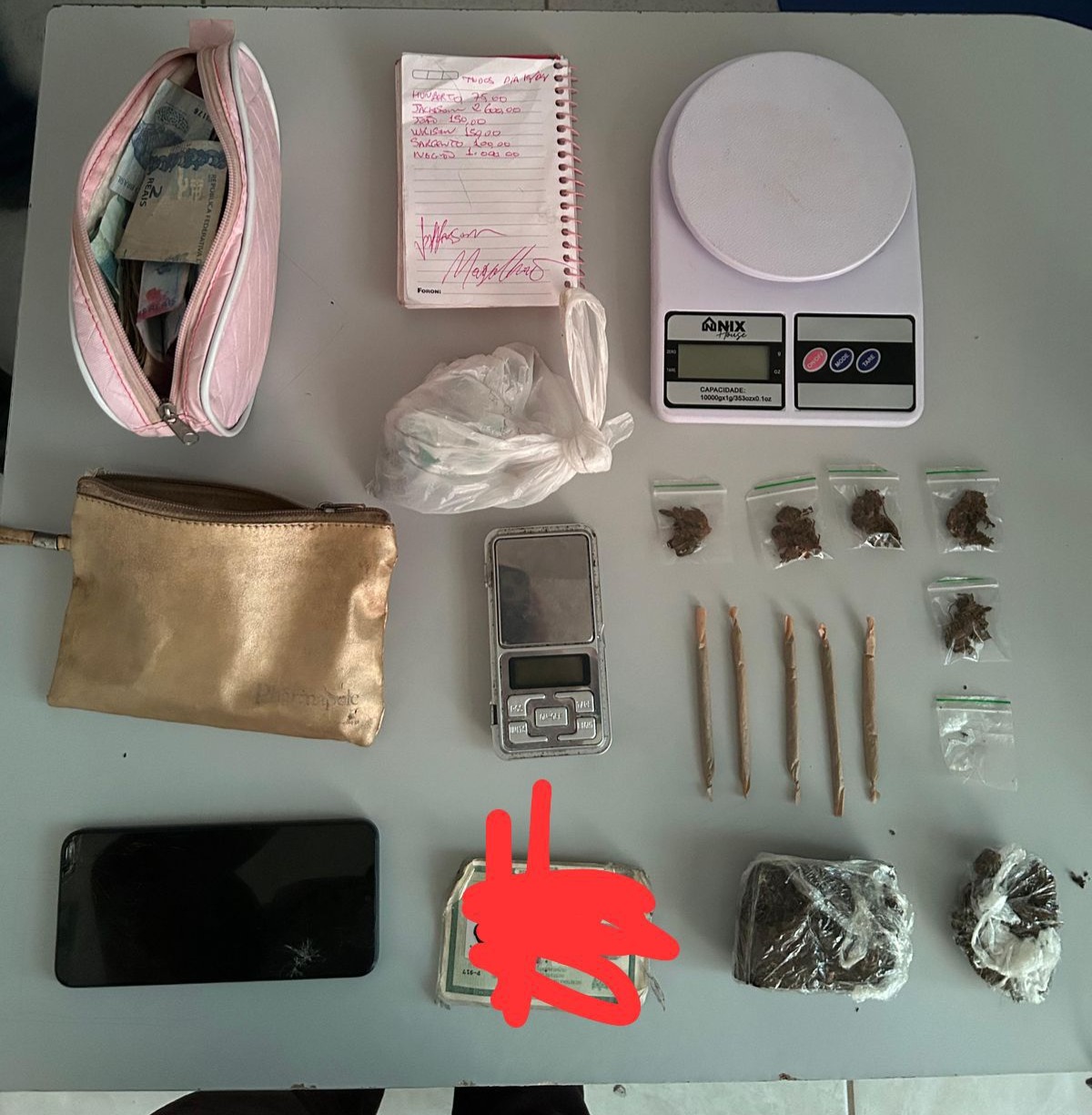 Durante a ação, foram apreendidos com a suspeita porções de maconha, diversos saquinhos plásticos utilizados para embalar cocaína e uma quantia em dinheiro proveniente da comercialização de entorpecentes.