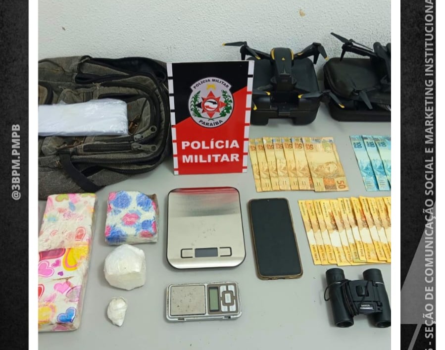 Policiais militares da 3ª Cia/3º BPM realizaram, na noite desta quinta-feira (23), uma ação de grande impacto em São Mamede–PB, resultando na prisão de um suspeito, expressiva apreensão de drogas e na desarticulação de monitoramento criminoso com uso de drones.