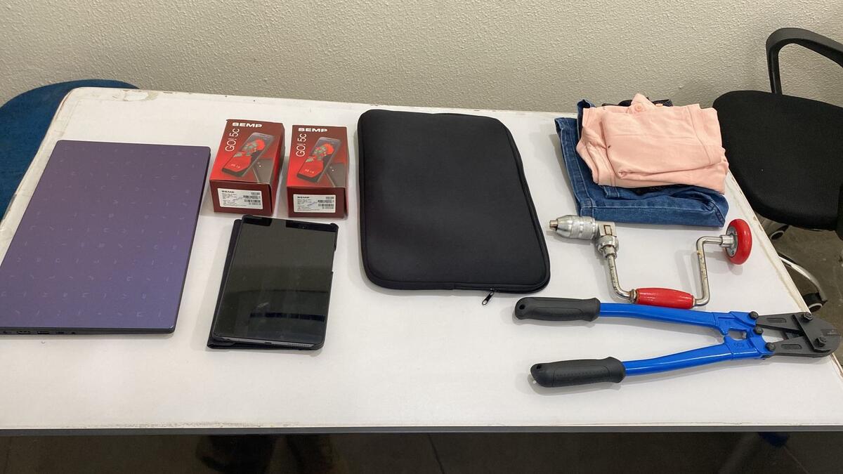 Na manhã de hoje, durante o cumprimento dos mandados, foram apreendidos materiais utilizados nos arrombamentos, produtos furtados e as roupas usadas nas ações.