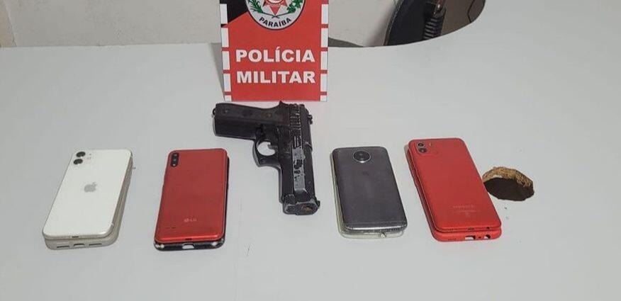 Dois homens foram presos, nessa sexta-feira (29), suspeitos de praticar vários roubos a celulares na cidade de Patos, Sertão paraibano. Eles foram capturados por policiais militares da Rádio Patrulha do 3º Batalhão. A dupla foi presa portando um simulacro de arma de fogo.