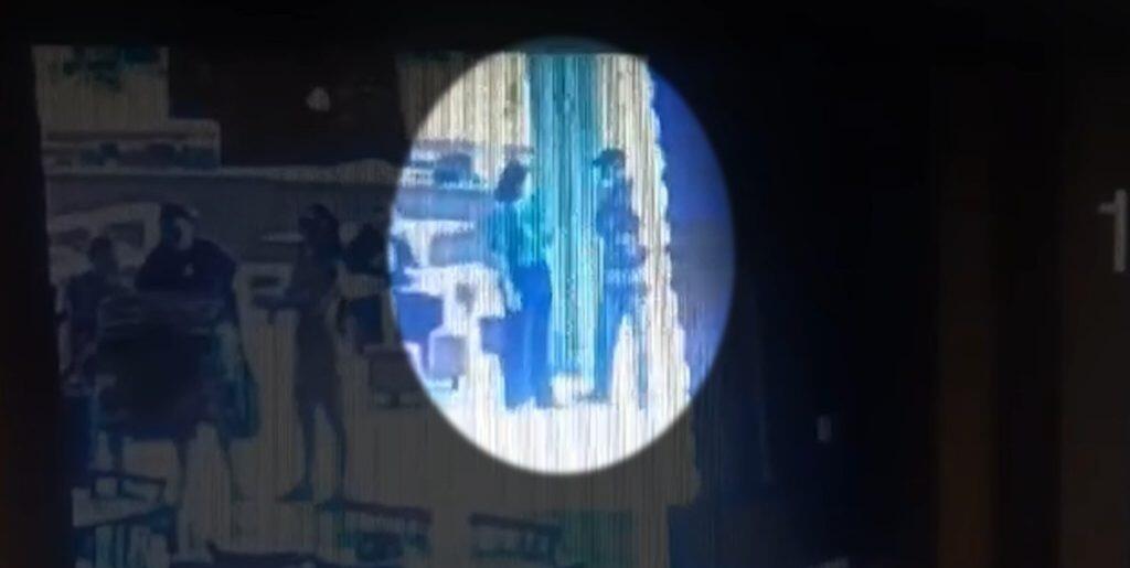 O suspeito retorna ao restaurante, para atrás do balcão e recarrega a arma. Neste momento, é possível ver pelo canto superior esquerdo do vídeo quando os policiais se aproximam do restaurante. Cerca de dois minutos depois de atirar em Mayara, o suspeito toma um funcionário do restaurante como refém e o mantém na mira da arma por cerca de três minutos. Durante este período, ele ainda atira na direção dos policiais, antes do vídeo se encerrar às 12h46.