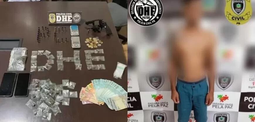 A Polícia Civil, por meio da Delegacia de Homicídios e Entorpecentes (DHE), estourou um ponto de venda de drogas e prendeu um homem, na manhã desta quarta-feira (10), em Patos, no Sertão da Paraíba.