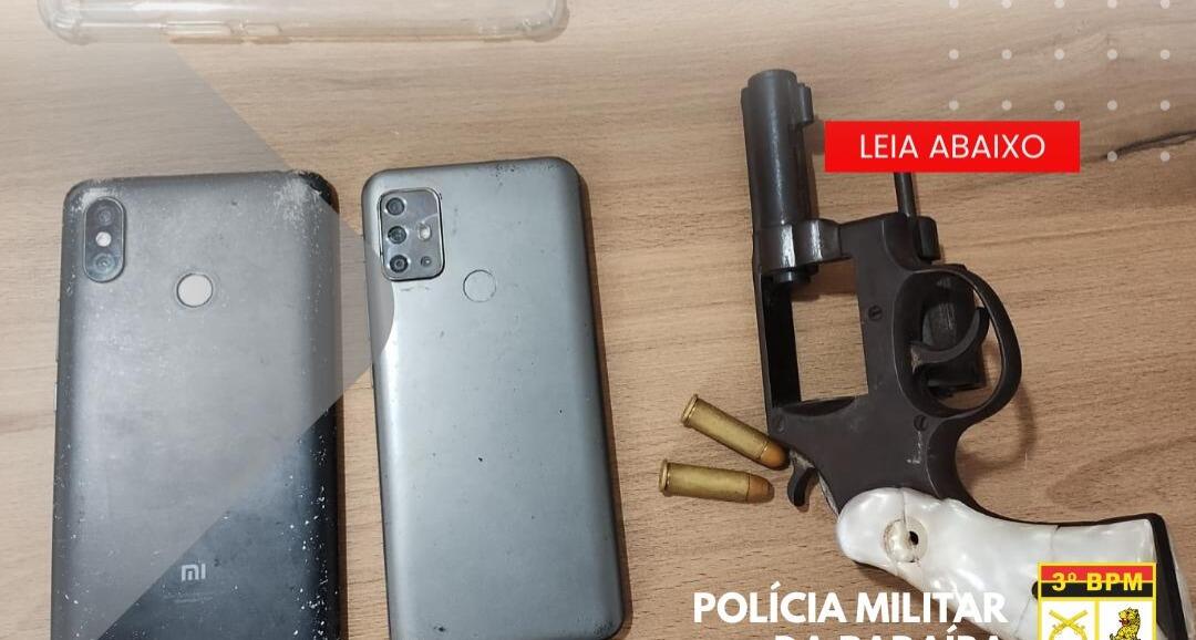 PM prende dois em Patos após roubarem mulher; revólver, objetos e moto são apreendidos