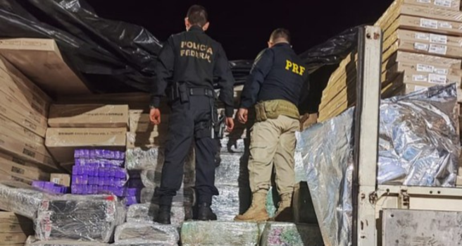 Durante uma fiscalização de rotina na BR-277, a Polícia Federal (PF) e a Polícia Rodoviária Federal (PRF) apreenderam, na noite desta sexta-feira (25), um carregamento com mais de 4,5 toneladas de maconha que tinha como destino final a cidade de João Pessoa, na Paraíba.