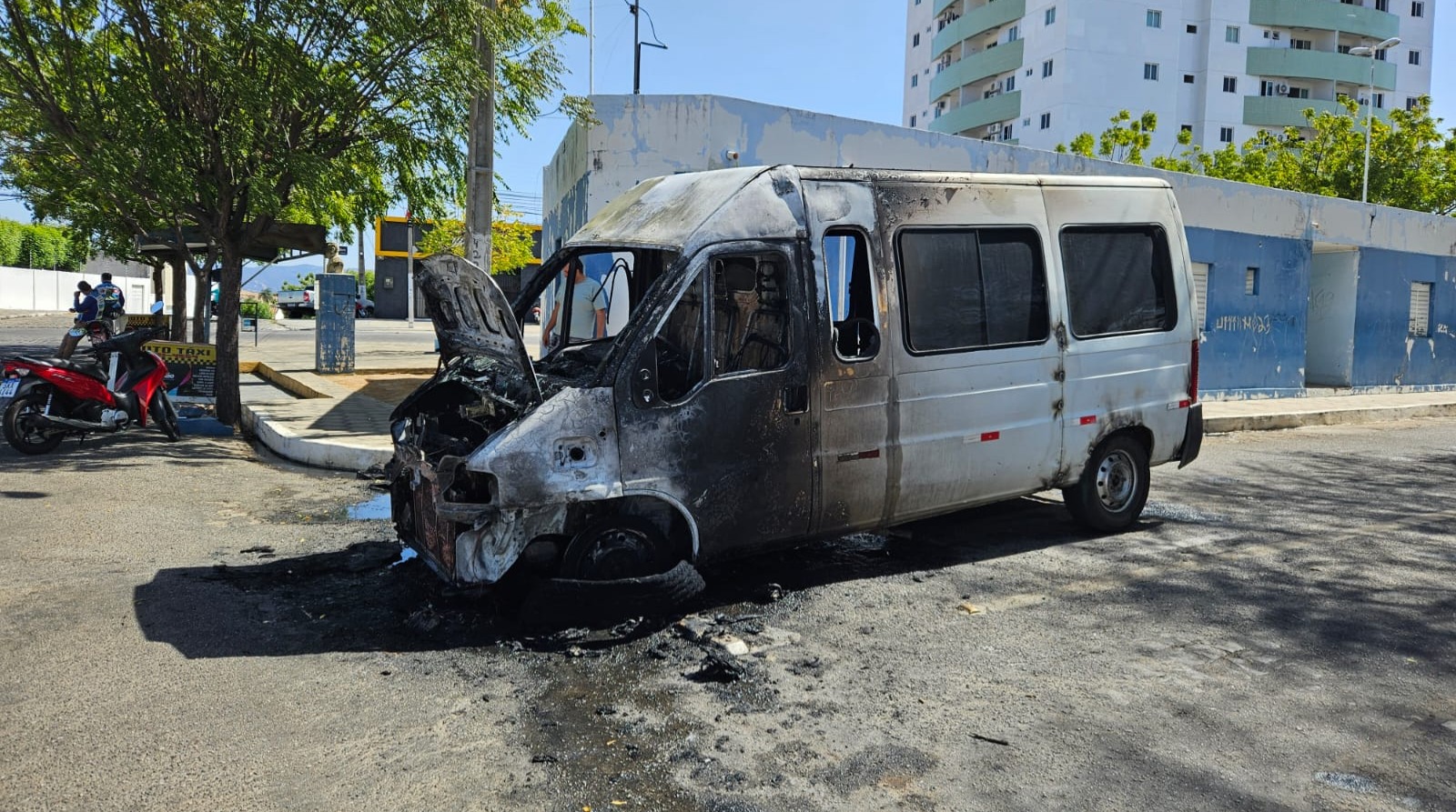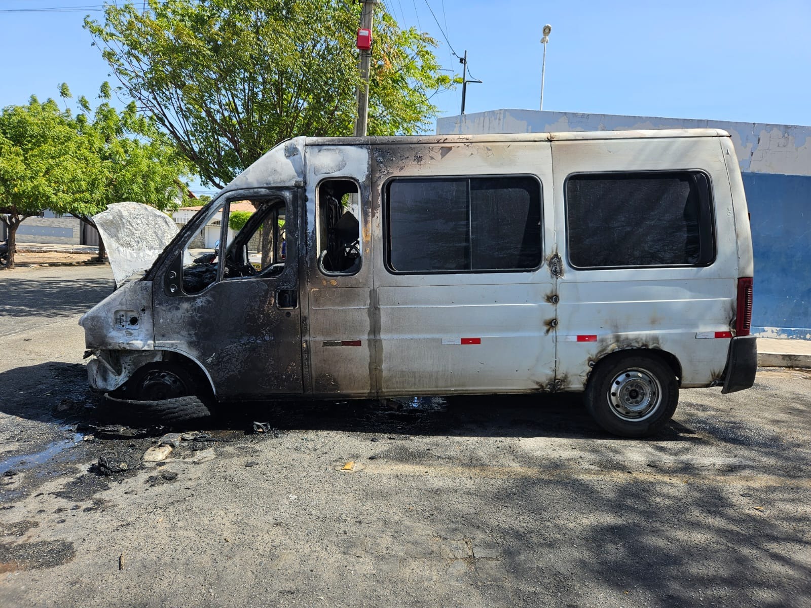 Um grave incidente foi registrado no início da tarde desta sexta-feira (11), bem ao lado da Praça de Perequeté, bairro Maternidade de Patos. Um veículo modelo Van, de placas JSM7F70, cor branca, pertencente à empresa de calçados D’Fera pegou fogo.