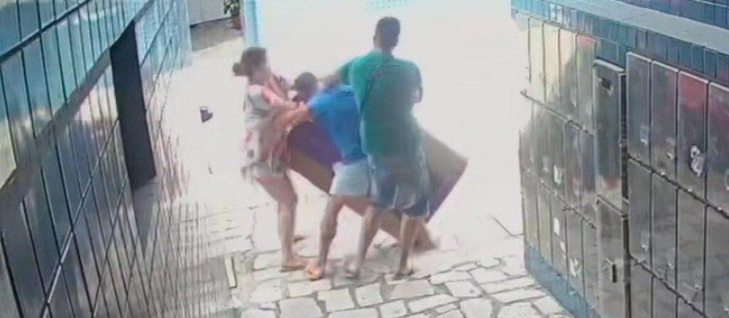 Segundo o material analisado, a vítima anunciou a TV em um site de vendas online. Ao se encontrar com o suposto comprador e sua acompanhante, o morador do edifício entregou a mercadoria após verificar um comprovante de transferência. Ao perceber que o dinheiro não havia caído, o dono da TV tentou impedir a saída com o aparelho, mas o homem, conforme as imagens, aplicou um mata-leão na vítima. Nesse intervalo, a mulher correu com a caixa do produto para fora do prédio.