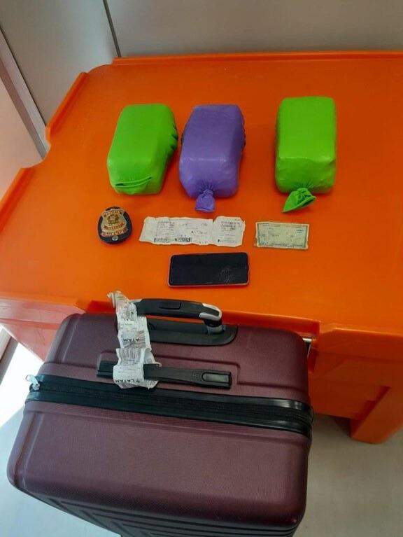 Segundo a PF, a droga encontrava-se escondida dentro de uma mala, envolvida por invólucros de plástico, dividida em três tabletes. A proprietária da bagagem foi identificada pelos policiais federais que realizavam as inspeções. A passageira veio de Brasília/DF, com destino a João Pessoa/PB.