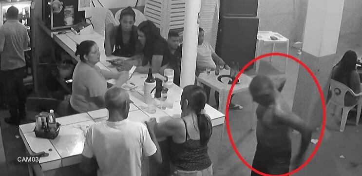 Por volta das 20h42 do domingo, a vítima estava em um bar, junto de outras pessoas, quando o homem chega e tira uma faca de dentro da bermuda.