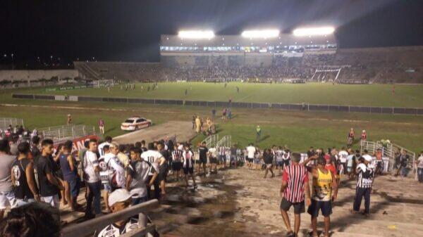 Esses torcedores do Galo começaram a atirar pedras e bombas para dentro da arquibancada sol. A ação chamou a atenção da Polícia Militar, que tentou intervir na confusão. Membros de torcidas organizadas do Botafogo-PB tentaram sair do estádio para confrontar os trezeanos e o clima piorou, com mais bombas sendo arremessadas de fora para dentro do Almeidão.