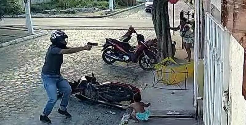 Uma bebê de aproximadamente um ano de idade ficou em meio a um ataque a tiros na cidade de Pedras de Fogo, na Paraíba. O crime aconteceu na tarde do dia 26 de fevereiro, mas as imagens de câmeras de segurança só começaram a circular nesta segunda-feira (3).