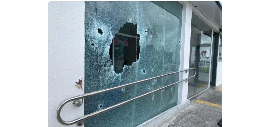 A agência alvo dos criminosos foi danificada pelos disparos.