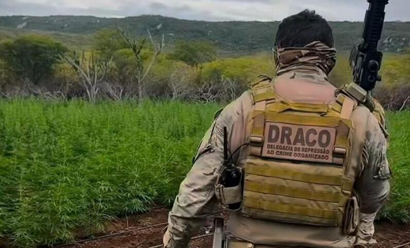 Uma operação conjunta da Polícia Civil da Paraíba e da Delegacia de Repressão ao Crime Organizado (Draco) prendeu sete homens, incluindo um policial militar, suspeitos de envolvimento com uma plantação de 15 mil pés de maconha na zona rural de Taperoá, no Cariri paraibano. A ação ocorreu na tarde desta quinta-feira (22) e incluiu a incineração da droga no próprio local.