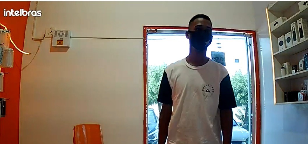 Logo em seguida, chega o comparsa e fica do lado de fora e pede para entrar, no entanto, o dono da loja não abre e segue negociando com o outro que ainda não havia anunciado o assalto.