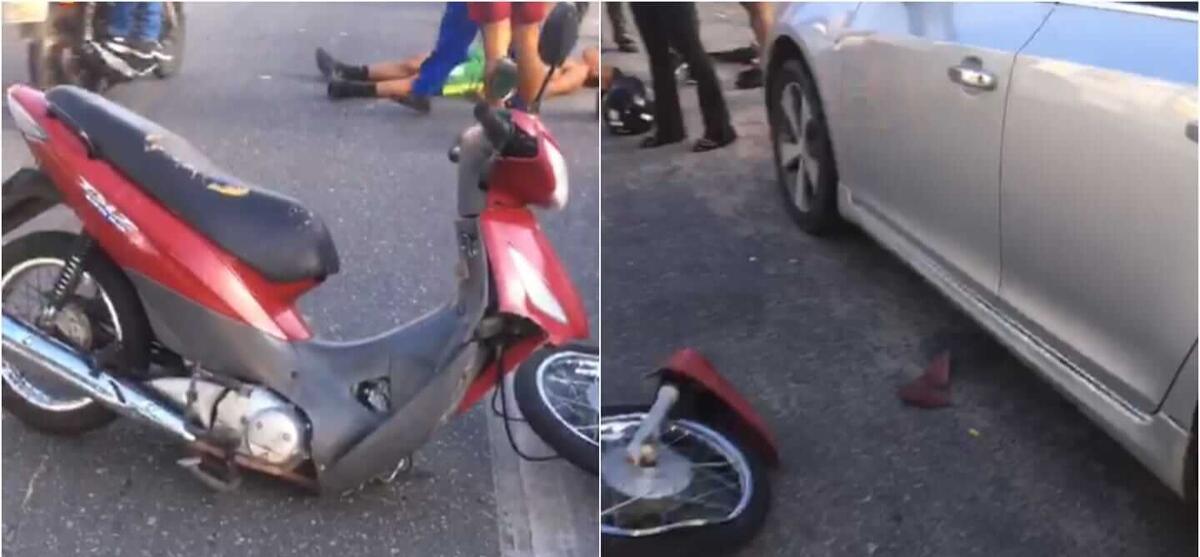 O rapaz que não foi ainda identificado, foi arremessado para longe da moto. O impacto foi tão grande que o pneu dianteiro da moto se soltou deixando o veículo bastante avariado