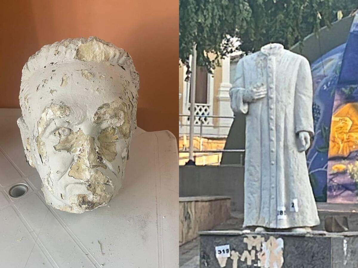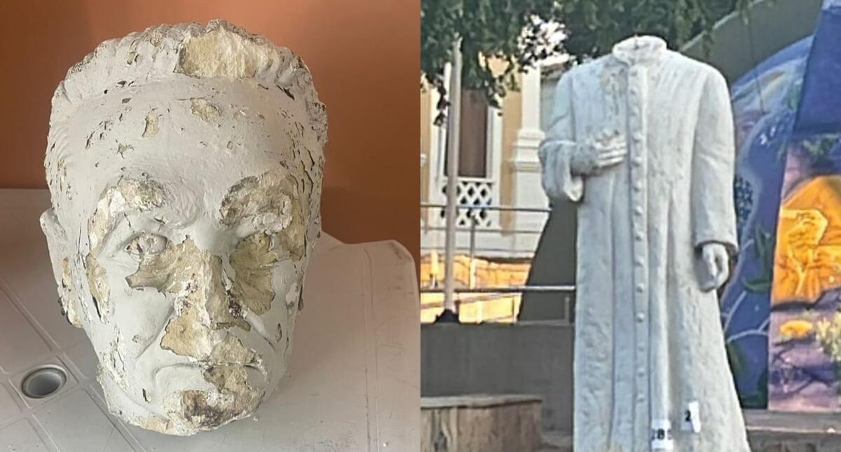 Vândalos arrancam cabeça de estátua de Monsenhor Manoel Vieira em Patos; câmeras de segurança da PM vão ajudar encontrar criminosos
