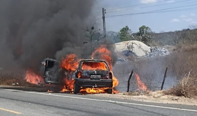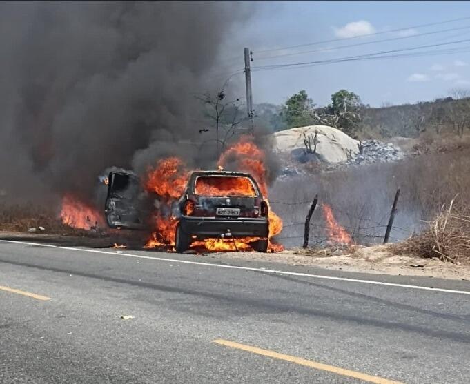 Hoje, o carro foi visto sendo incinerado às margens da rodovia.