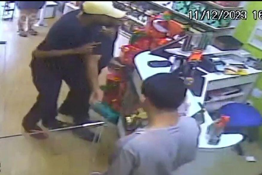 Imagens de câmeras de segurança mostram o momento em que a dupla invade o estabelecimento usando uma faca e rende os funcionários e clientes da loja. O crime aconteceu por volta das 16h50 e a ação durou 39 segundos.