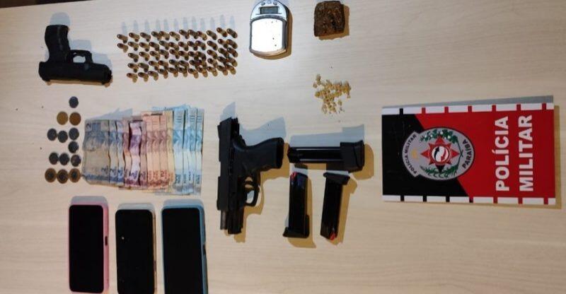 A Polícia Militar apreendeu três armas de fogo, mais de 40 munições, drogas dos tipos maconha, crack e cocaína, além de um simulacro e uma balança de precisão, de domingo (28) até esta terça-feira (30), nas cidades de Coremas, Vista Serrana e Cajazeiras.