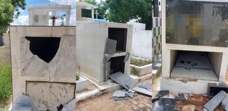 Conforme apurado, ao menos 20 túmulos foram violados e danificados no cemitério, além dos autores do crime terem espalhado os caixões pelo local, mexido nos restos mortais, destruído flores e quebrarem objetos.