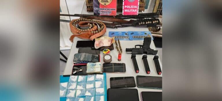 Foram cumpridos 14 mandados de busca e apreensão. Entre os materiais apreendidos estiveram armas, munições, maconha, cocaína, dinheiro vivo, trituradores e animais silvestres.
