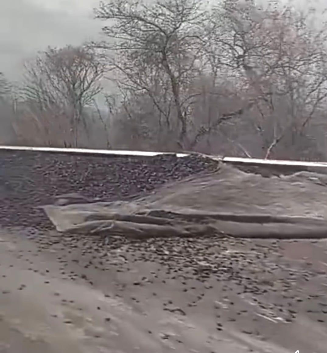 A carga ficou totalmente espalhada pela rodovia e deu muito trabalho para o recolhimento por parte de homens do DER.