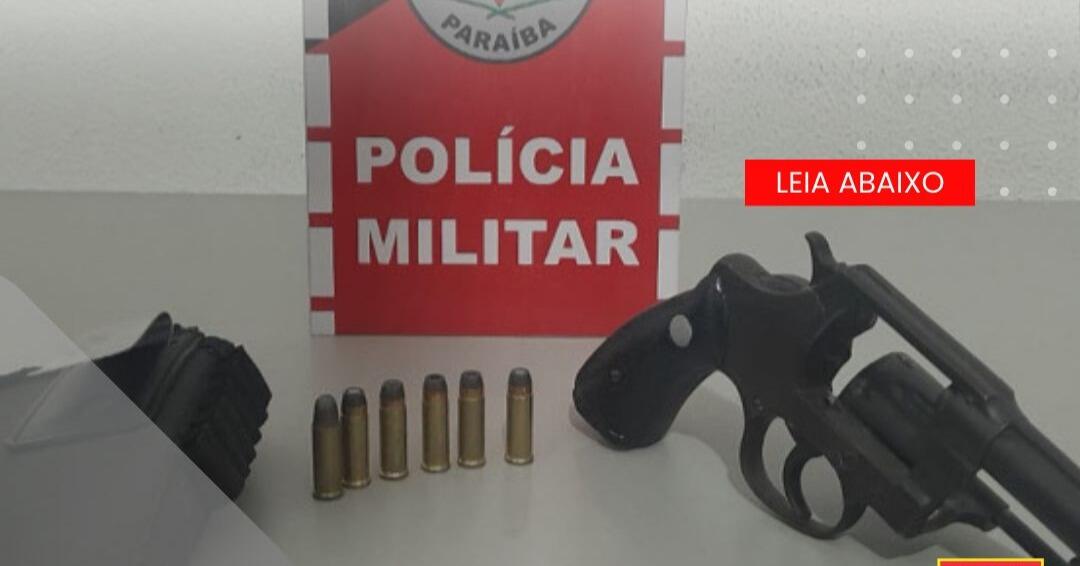 Imediatamente a guarnição iniciou diligências até o local para averiguação da denúncia, chegando a localidade o indivíduo foi identificado, nesse instante foi realizada a revista pessoal momento em que foi localizado na altura da cintura um revólver cal 32, municiada com seis munições intactas.