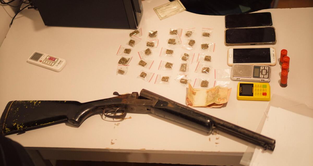 A ação, fruto de um intenso trabalho de análise e investigação, teve 19 alvos, resultando na condução de seis pessoas à delegacia, além da apreensão de armas, drogas, dinheiro e celulares. Durante a operação, as equipes apreenderam uma pistola Taurus .380, um carregador e 16 munições, além de uma espingarda calibre 12. Foram encontrados ainda diversos papelotes de maconha e cocaína, bem como quantias em dinheiro e aparelhos celulares, que serão analisados para andamento das investigações.