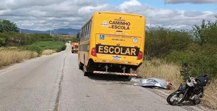 Motociclista morre após moto colidir na traseira de ônibus escolar na PB-228, em Cacimba de Areia