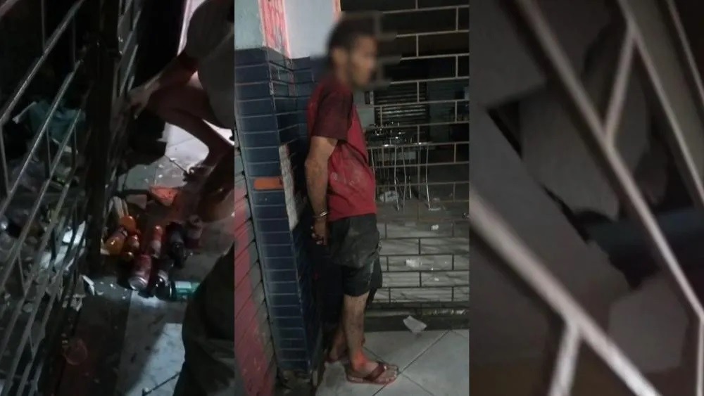 Ao chegarem, os agentes encontraram o suspeito dentro da lanchonete. Para acessar o espaço, ele danificou o forro de gesso e entrou pelo telhado, provocando prejuízos à estrutura do box.