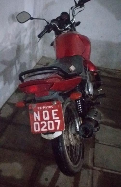A moto tinha sido furtada de Misael dos Santos Paula, que estacionou sua moto em frente a uma loja de conveniência, na Rua do Prado, em Patos, por volta das 16 horas, e ao voltar, não a encontrou mais.