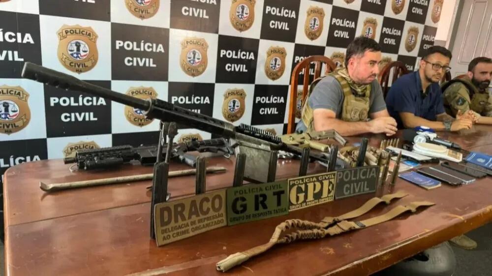Na ação, foram apreendidas armas e munições de grosso calibre e preso um outro homem.