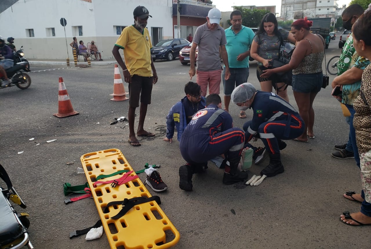 Mais um acidente foi registrado na cidade de Patos-PB na tarde desta sexta-feira (04), por volta das 17h15, no cruzamento das ruas Felipe Camarão com 18 do Forte, no bairro Santo Antônio.