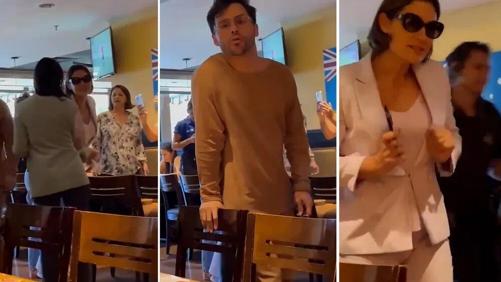 Em seguida, Michelle se dirige à mesa da mulher que a questiona sobre as joias e responde, em tom irritado: “você é tão mal-informada que sabe onde estão as joias”. Nesse momento, é possível ouvir um barulho – o maquiador jogou um copo de gelo na mulher que os filmava.
