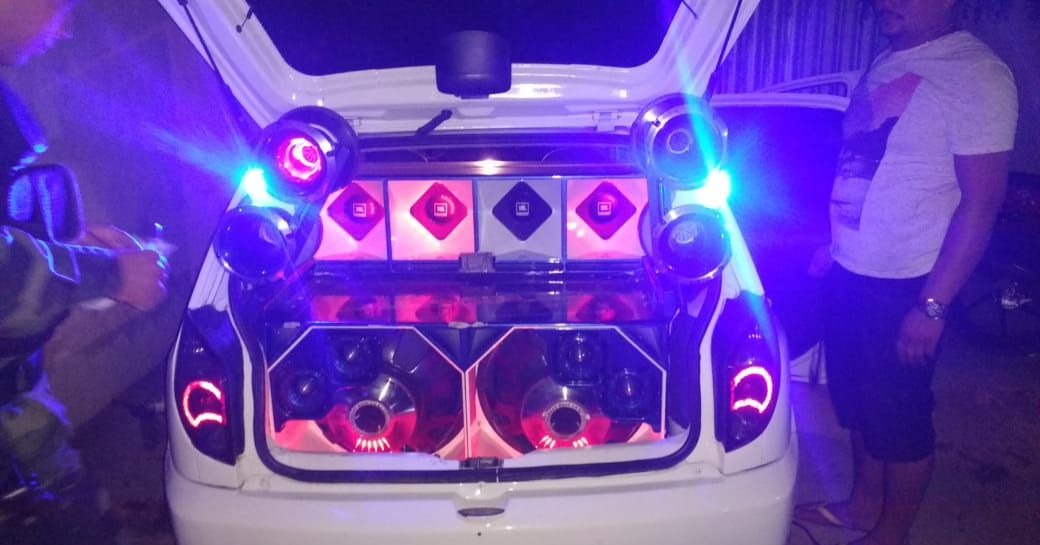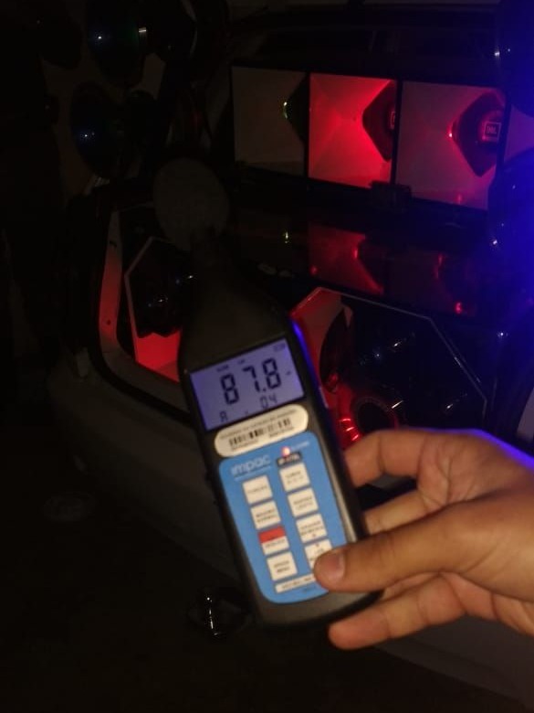 Segundo relatos dos policiais, foi constatado um volume incompatível com as normas estabelecidas na legislação ambiental em vigor, produzido por meio aparelho sonoro estilo "paredão" acoplado a veículo celta/placa KYO 4091, constatou níveis sonoros elevados, com 87,8 DB(A) através do decibelímetro, o que ultrapassou 39,5 DB (A) acima do permitido, contrariando a legislação em vigor.