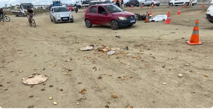 Depois de atingir a moto, o veículo que teria provocado o acidente ainda chegou a bater no outro carro que estava à frente. O motorista fugiu do local sem prestar socorro às vítimas.