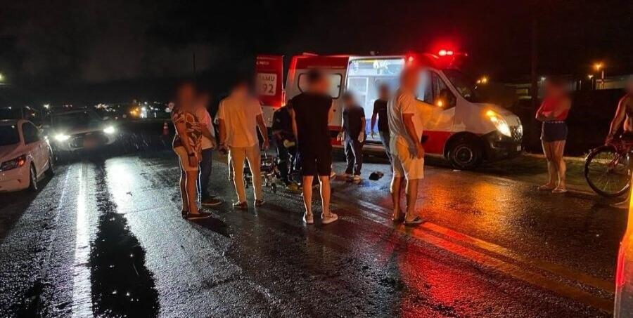 Um acidente envolvendo um motociclista e um ciclista interrompeu o tráfego na BR-361, próximo à entrada do Conjunto Residencial Itatiunga, em Patos, na noite deste domingo, 31 de dezembro. O sinistro ocorreu por volta das 23h30, sob condições de chuva na região.