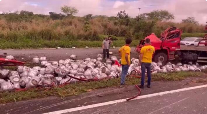 O caminhão e a carga de botijões já foram removidos do local, e não houve necessidade de interdição da pista. As causas do acidente estão sendo investigadas.