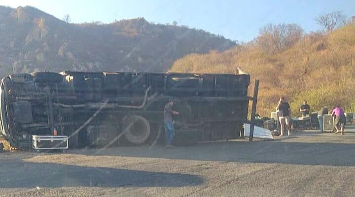 Caminhão com equipamentos de som tomba na Serra de Teixeira