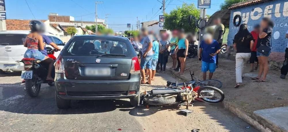 Resultado: quatro pessoas feridas. O piloto da Honda Pop, que estava com seu filho na garupa, ficou preso embaixo do carro e foi socorrido em estado grave ao Complexo Hospitalar Regional de Patos.