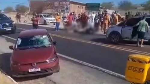 [IMAGENS FORTES] Colisão entre carro e moto mata jovem na curva do Hotel na BR-230, em Santa Luzia
