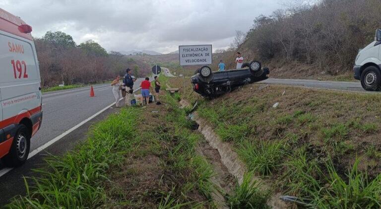 Carro com cinco pessoas capota na BR-230 em Campina Grande