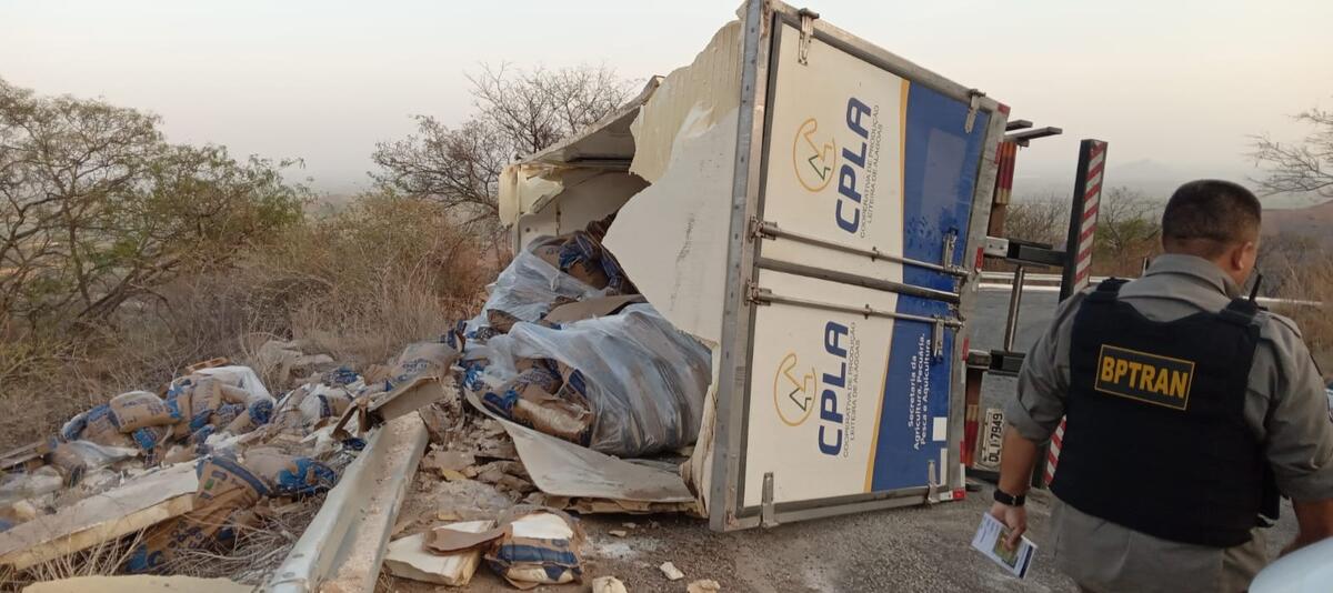 O caminhão seguia de São José do Egito-PE com destino a Patos, quando o motorista perdeu o controle do veículo durante a descida da serra.