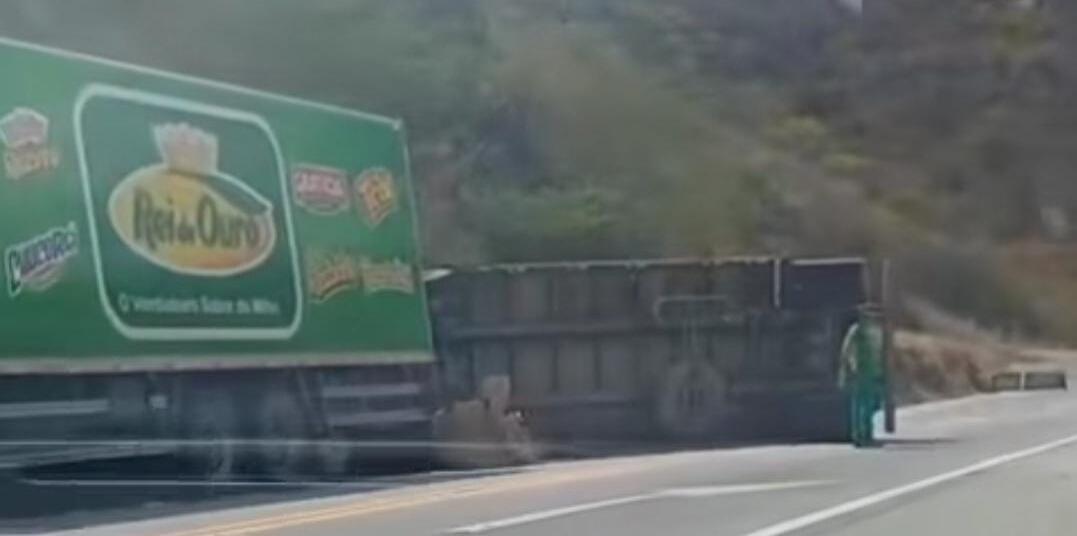 Semirreboque de caminhão tomba em trecho da Serra de Santa Luzia