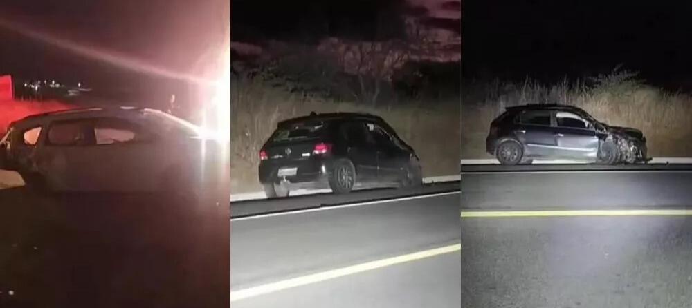A Polícia Rodoviária Federal (PRF) informou que a colisão envolveu um Chevrolet Spin, de cor branca, e um Volkswagen Gol, de cor preta.