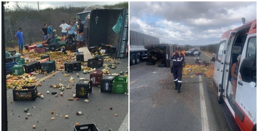 O acidente aconteceu por volta das 8h, nas proximidades do quilômetro 210 da rodovia federal. Conforme a PRF, o veículo seguia sentido Campina Grande quando o condutor perdeu o controle e acabou tombando às margens da pista, espalhando parte da carga pela rodovia.