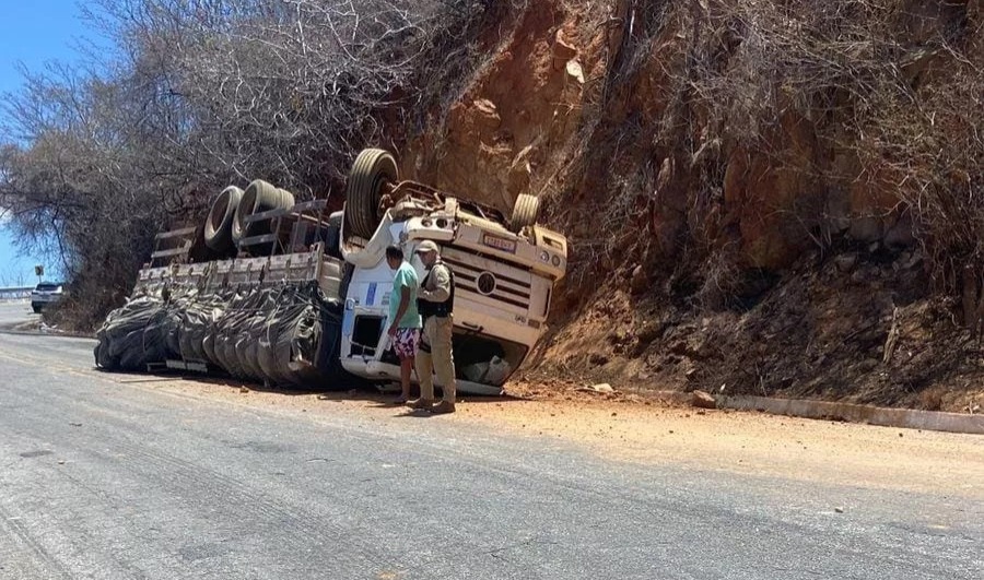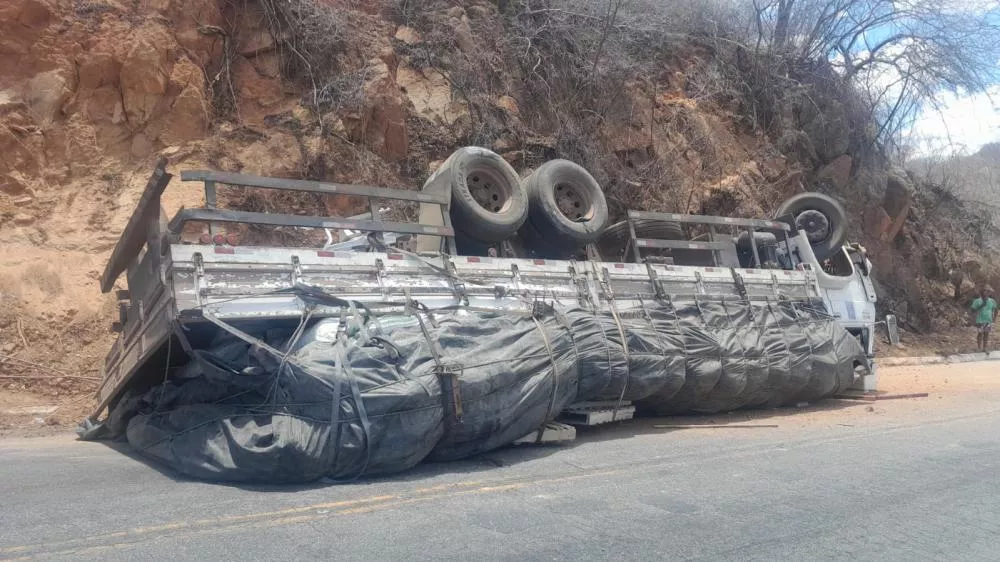 Um caminhão modelo Volkswagen VW 23.210 MOTOR MWM, de cor branca, tombou na manhã desta quarta-feira (12) na rodovia estadual PB-262, em um trecho da Serra do Teixeira, no Sertão da Paraíba. O acidente foi registrado por volta das 10h45.