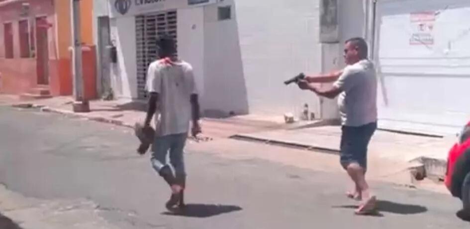 O policial militar que estava de folga percebeu as agressões e efetuou dois disparos contra o companheiro da vítima.